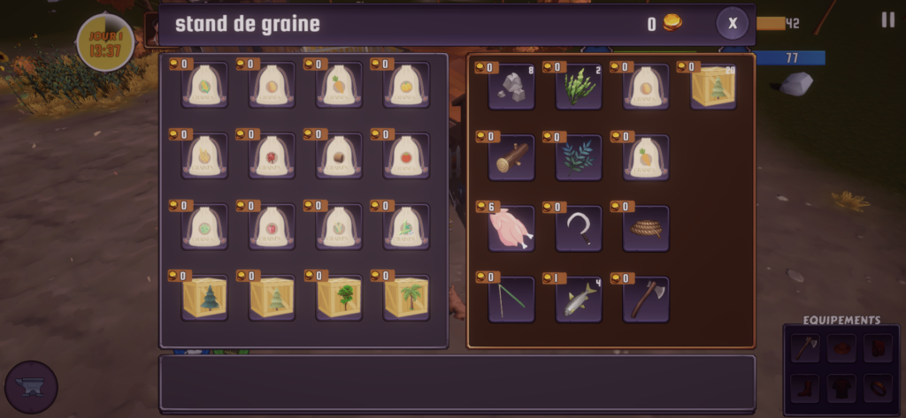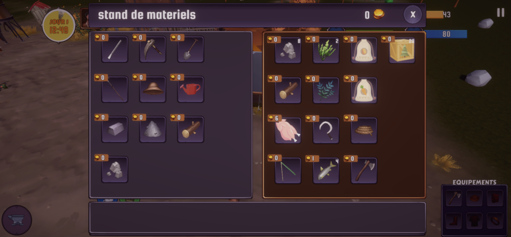 les divers stand sont a disposition moyennent quelque pièces d’or, tu pourra acheté ce qu’il te faut pour progressé dans la construction de ta ferme.