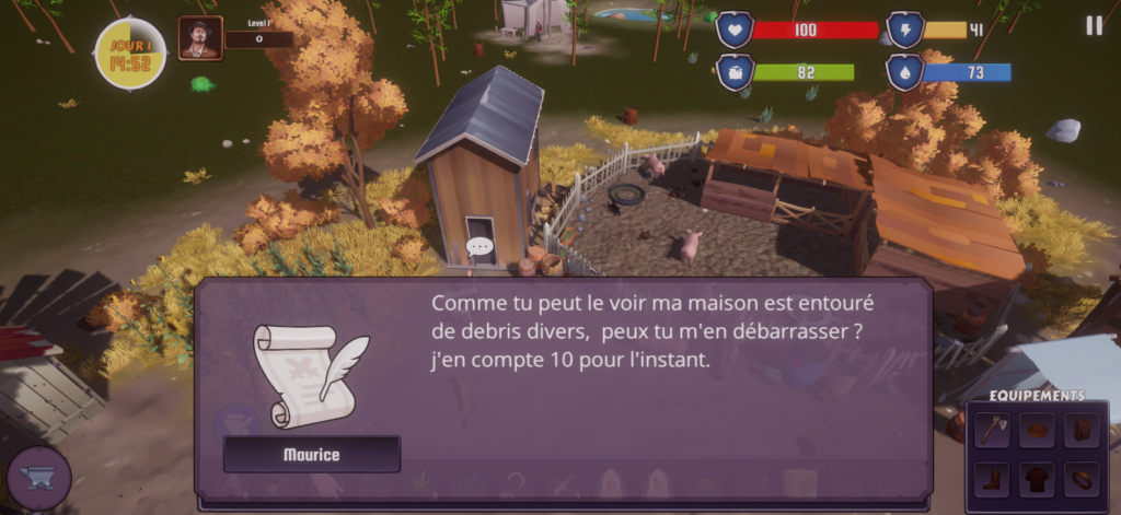 Tu incarne un paysans qui doit survivre sur une terre a conquérir, développe ta propre ferme plante et cultive les fruits et légumes que tu à planté, tu peut aussi faire de l’élevages de cochon, poule, vache, mouton, rencontre d’autre paysans PNJ sur le monde que tu a choisis, effectue des quêtes et récupère de belle récompenses, n’oublie pas de te nourrir et de boire de l’eau, et fait remonté le moral de ton personnage. Bonne chance et construit la ferme de tes rêves !